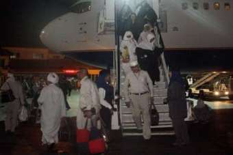 این حجاج پس از گذراندن مراحل ورود و بازدیدهای اولیه، مورد معاینات پزشکی قرار گرفتند تا از صحت و سلامت آنان در برابر بیماری و ویروس اطمینان حاصل شود و سپس با خروج از درب های در نظر گرفته شده در محوطه فرودگاه، به اعضای خانواده های خود که برای استقبال آمده بودند، پیوستند.