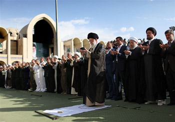 حضرت آیت الله خامنه ای در خطبه های دوم نماز عید فطر امسال برپایی روز قدس در میان ملت های دیگر را با رونق و باشکوفایی بیشتر دانستند و گفتند: خبرهایی که به ما رسیده نشان میدهد ملتهای دیگر روز قدس را علیرغم تهدیدات دشمنان باشکوه و گرامی میدارند و جهتگیری آنها به سمت ملت ایران است. البته دشمنان همواره در حال توطئه علیه ملت ایران هستند زیرا از گسترش فکر و فرهنگ ایران در بین کشورهای دیگر نگران هستند.
