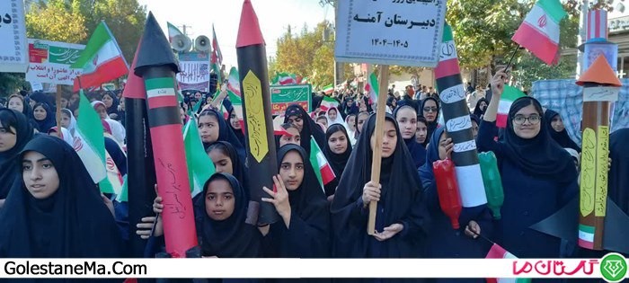 گنبدی‌ها امروز با حضور حماسی خود در میادین شهر با مشت‌های گره کرده شعار «مرگ بر آمریکا» و «مرگ بر اسرائیل» را سر دادند.