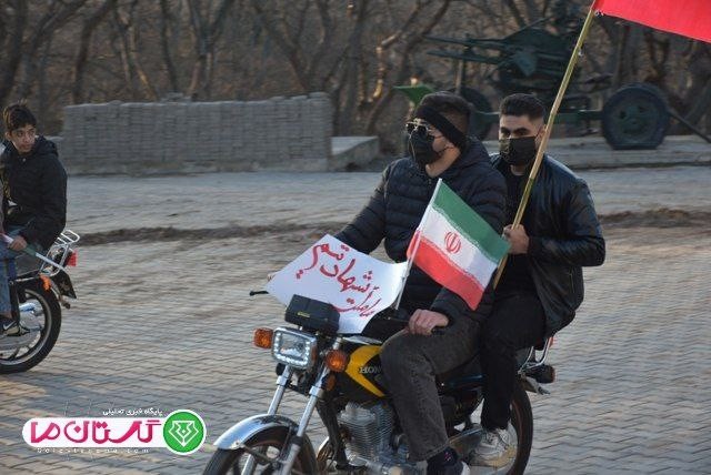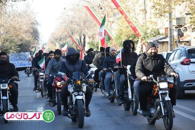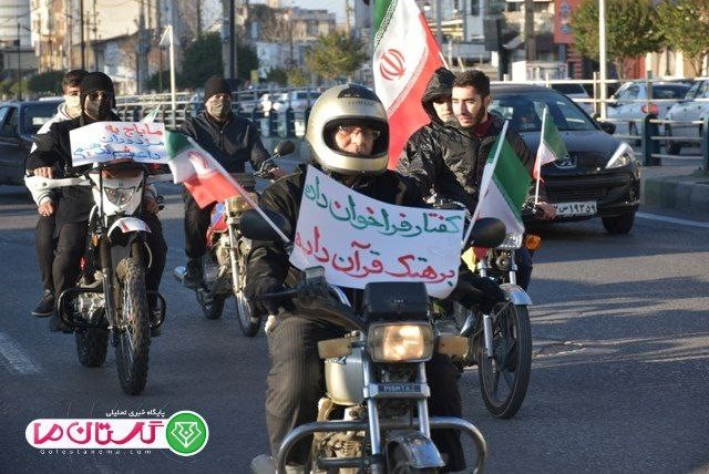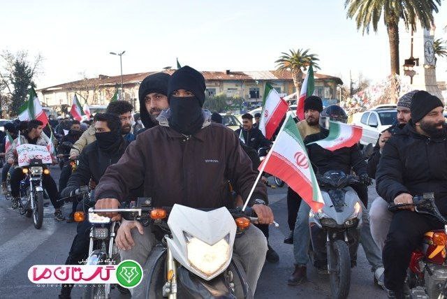 موتورسواران گرگانی با پای کار انقلاب اسلامی آمدند و با حمل پرچم ایران و پلاکارت‌هایی و شعار حیدر حیدر تاکید کردندتا پای جان پای ایران اسلامی هستند.