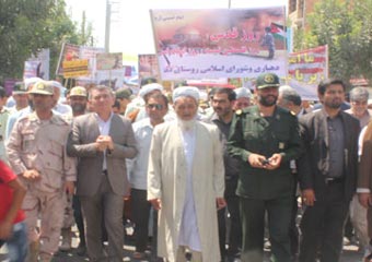مردم روزه دار گمیشان علی رغم گرمای شدید هوا بازهم در روز قدس به خیابانها آمدند و حمایت خود را از مردم مظلوم فلسطین اعلام و باردیگر با آرمانهای معمار کیبر انقلاب تجدید پیمان کردند.