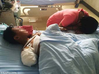 یک پسربچه چینی زمانی که قصد داشت یک خرس را در قفس باغوحش لمس کند، دست خود را از دست داد.
