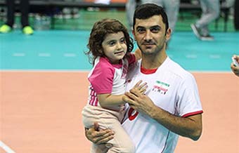اعضای تیم ملی والیبال ایران پس از قهرمانی در رقابت های آسیایی در حالی که فرزندان خود را آغوش داشتند قهرمانی را جشن گرفتند.