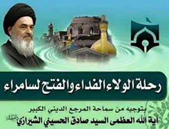تصویر اطلاعیهای در شبکههای اجتماعی دست به دست میشود که سید صادق شیرازی، جمعه آخر ماه مبارک رمضان را به عنوان روز نصرتِ عسکریین نامگذاری نموده و از حرکت کاروانهای زیارتی ولائیان فدائی جهت فتح و نصرت سامراء خبر میدهد.