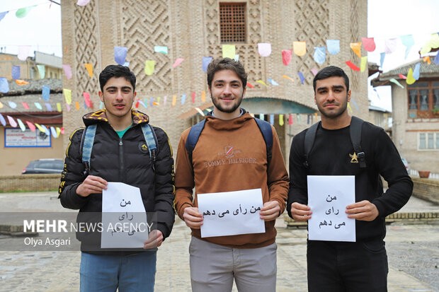 مشارکت مردم در سنین مختلف در هر شغل و با هر قومیتی در استان گلستان برای انتخابات ۱۴۰۲ با شعارهای «من هستم»، «نوبت انتخاب» و «من رأی میدهم».