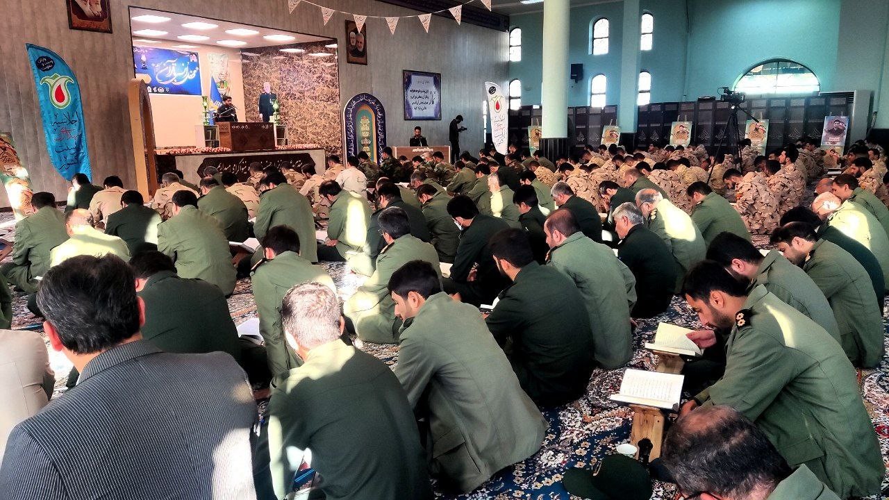 محفل انس با قرآن کریم به نیت نذر ظهور در حسینیه سپاه نینوای استان گلستان به مناسبت هفته بسیج و گرامیداشت اجلاسیه شهدای زن اهل سنت کشور برگزار شد.