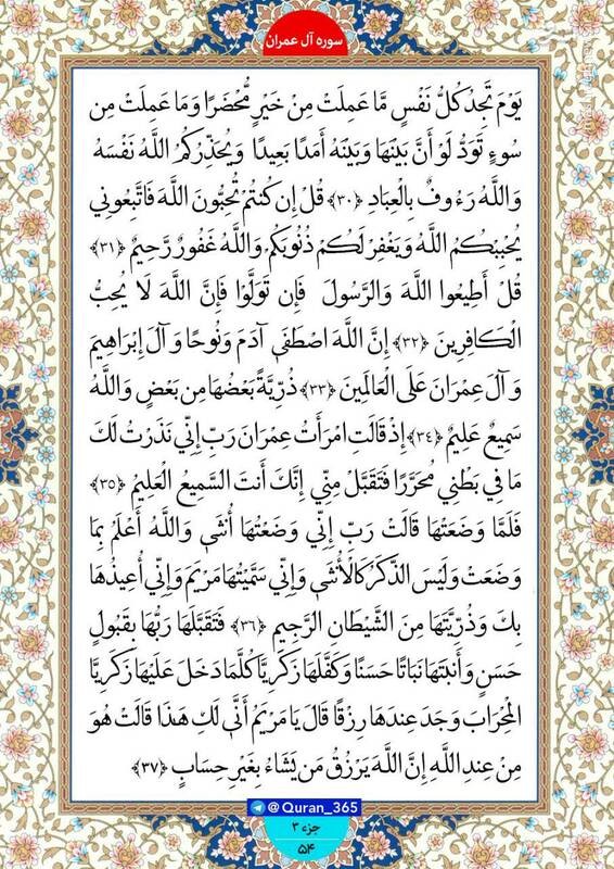 صبح خود را با قرائت آیاتی از صفحه ۵۲ از سوره مبارکه آل عمران (جزء سوم) شروع کنید.