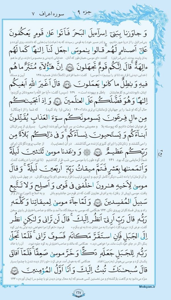 امروز خود را با قرائت آیاتی از صفحه 167 از سوره اعراف (جزء نهم) شروع کنید.