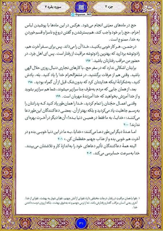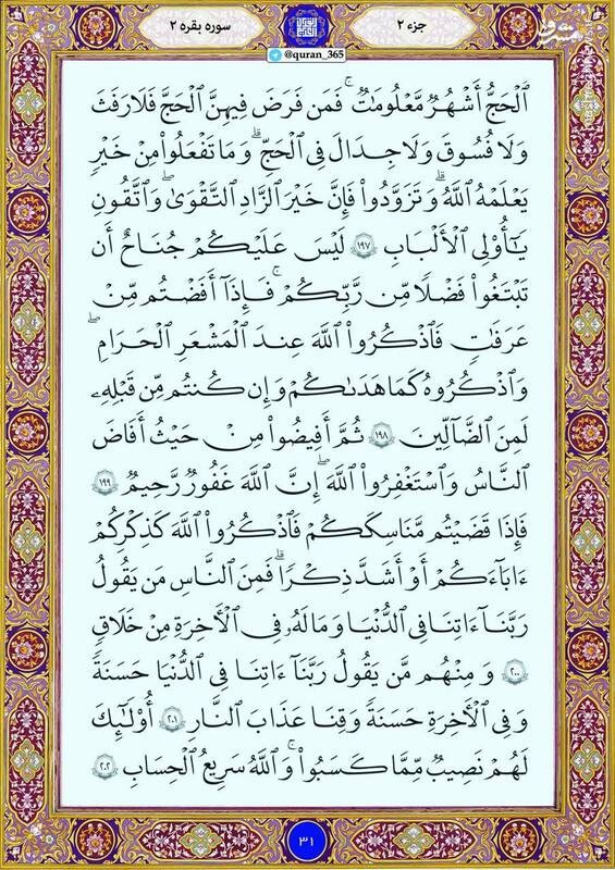 صبح خود را با خواندن آیاتی از صفحه ۳۱ از سوره مبارکه بقره (جزء دوم)، آغاز کنید.