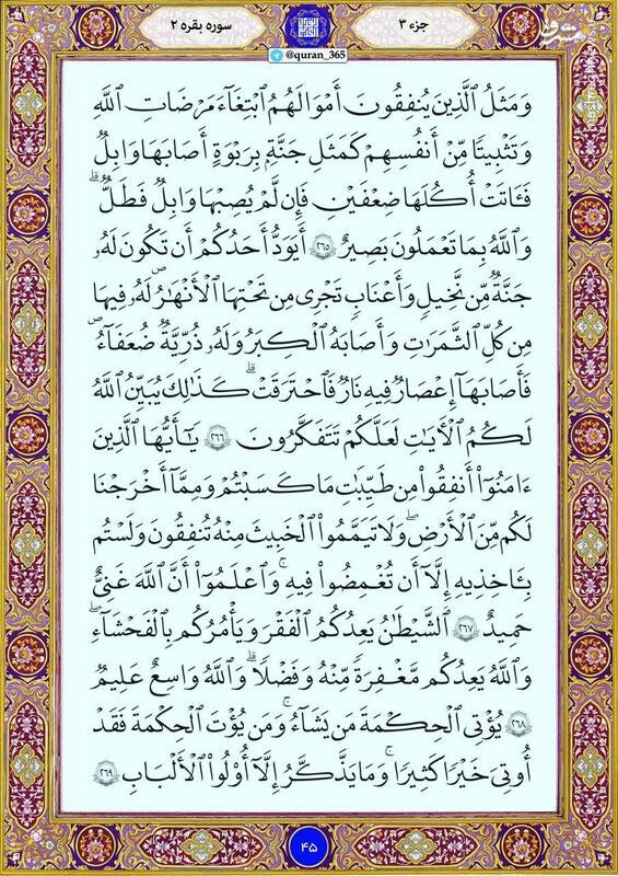 صبح خود را با خواندن آیاتی از صفحه ۴۵ از سوره مبارکه بقره (جزء سوم)، آغاز کنید.