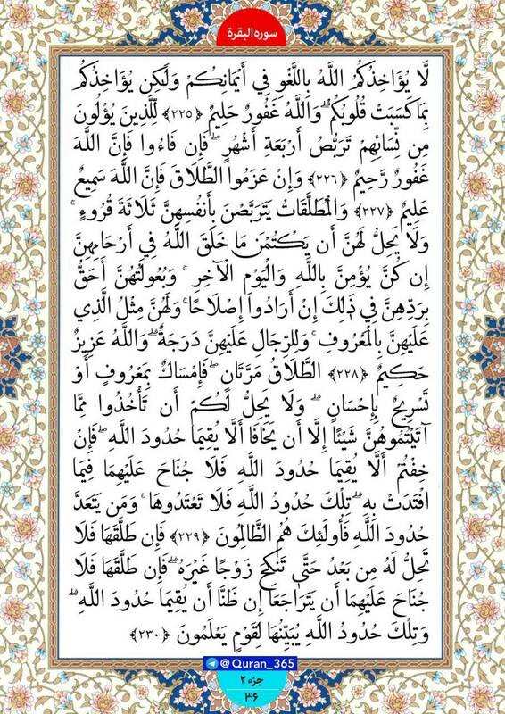 صبح خود را با خواندن آیاتی از صفحه 36 از سوره مبارکه بقره (جزء دوم)، آغاز کنید.