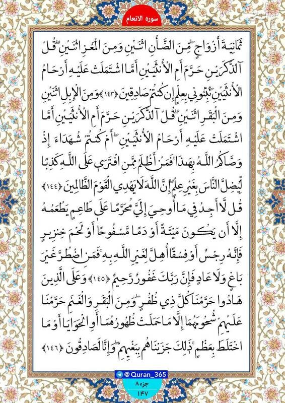خانه‌های خود را با قرائت آیاتی از صفحه ۱۴۷ از سوره انعام(جزء هشتم) شروع کنید.