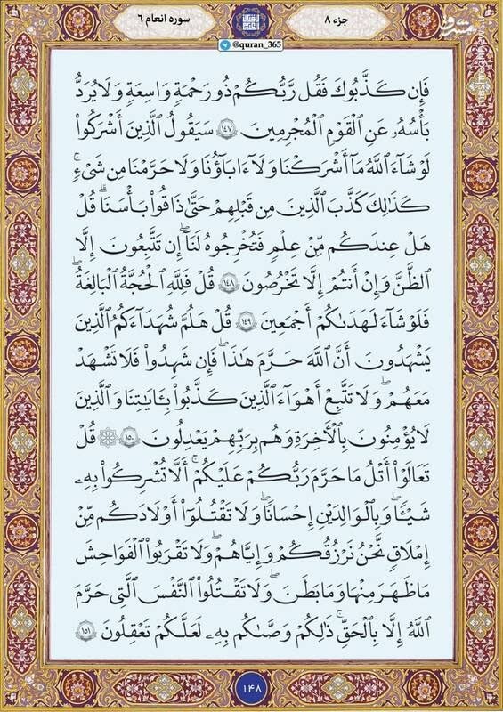 خانههای خود را با قرائت آیاتی از صفحه ۱۴۸ از سوره انعام(جزء هشتم) شروع کنید.