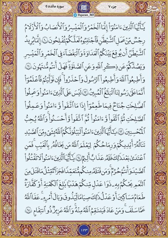 روز خود را با قرائت آیاتی از صفحه ۱۲۳ سوره مائده شروع کنید.