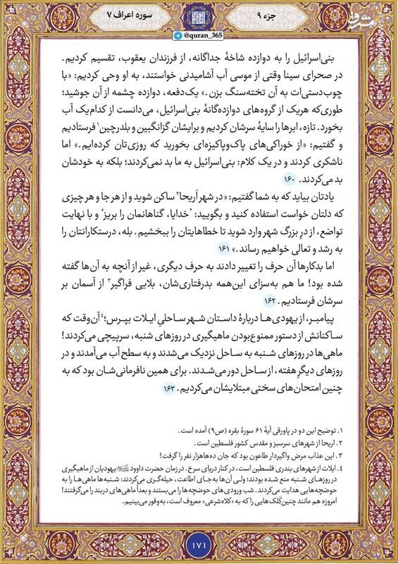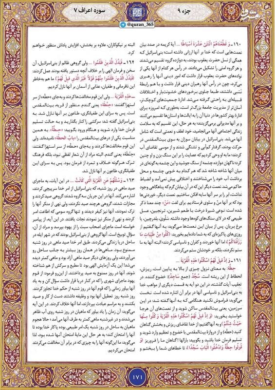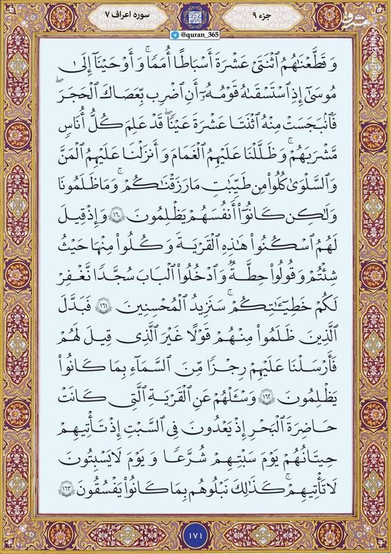 صبح خود را با قرائت آیاتی از صفحه ۱۷۱ سوره سوره اعراف شروع کنید.