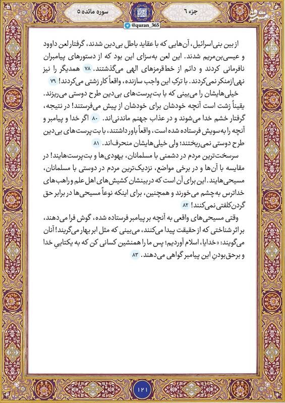 روز خود را با قرائت آیاتی از صفحه ۱۲۱ سوره مائده شروع کنید.