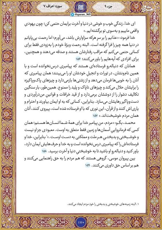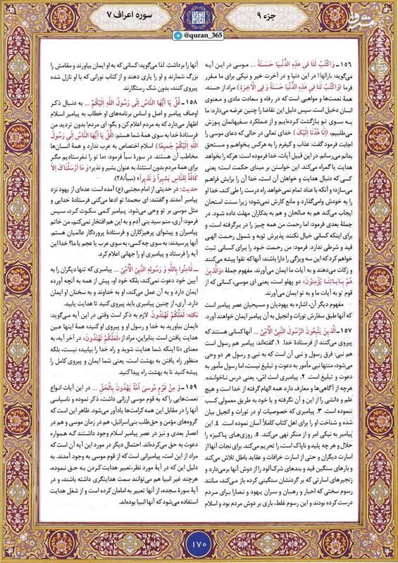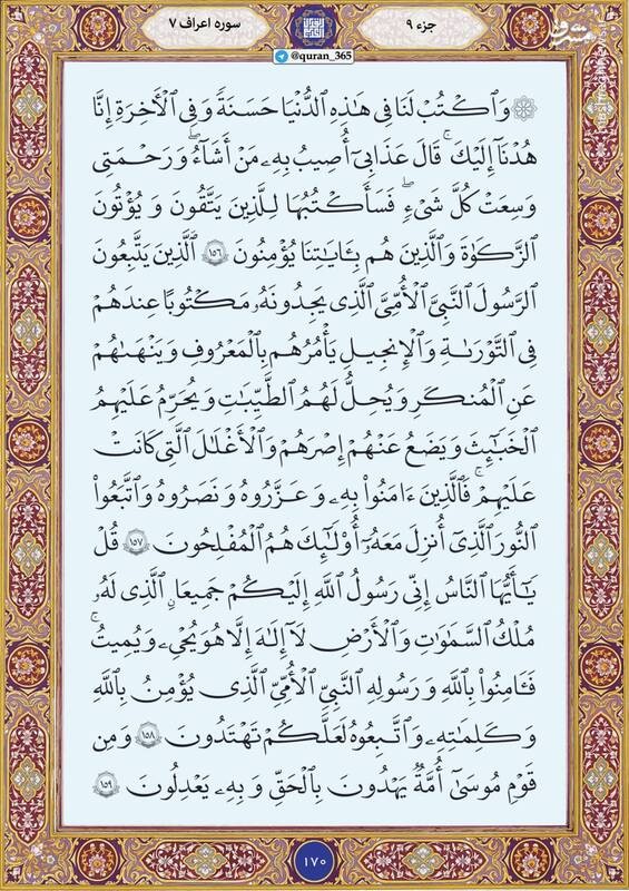 صبح خود را با قرائت آیات صفحه ۱۷۰ سوره سوره اعراف شروع کنید.