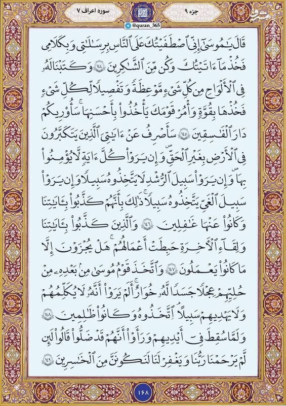 صبح خود را با قرائت آیاتی از صفحه ۱۶۸ سوره سوره اعراف، شروع کنید.