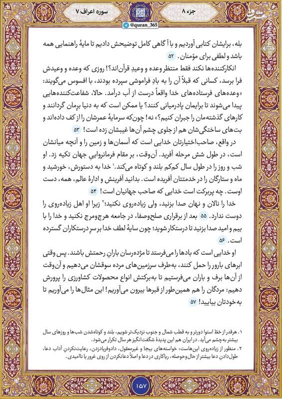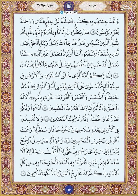 صبح خود را با قرائت آیاتی از صفحه ۱۵۷ سوره سوره اعراف، آغاز کنید.