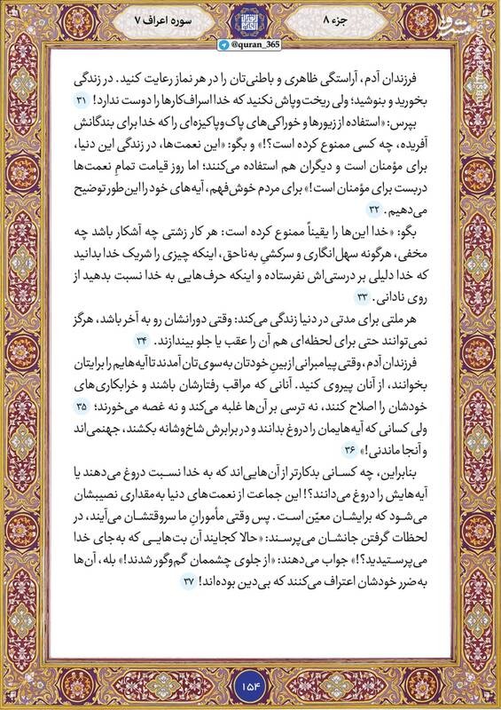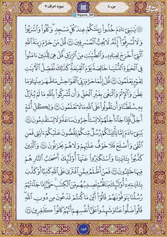 صبح خود را با قرائت آیاتی از صفحه ۱۵۳ سوره سوره اعراف شروع کنید.