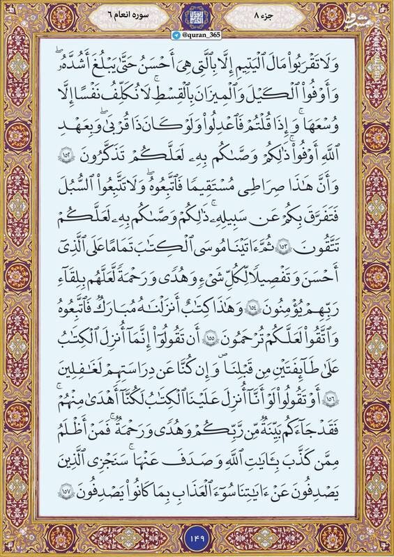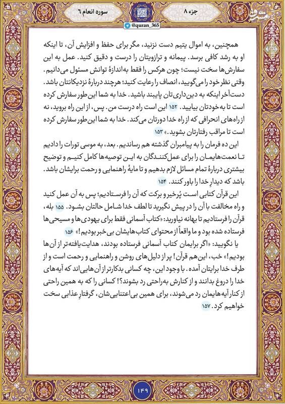 صبح خود را با قرائت آیاتی از صفحه ۱۴۹ سوره سوره انعام شروع کنید.