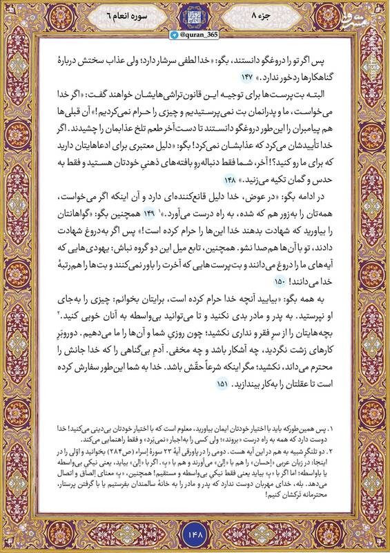صبح خود را با قرائت آیاتی از صفحه ۱۴۸ سوره انعام، شروع کنید.