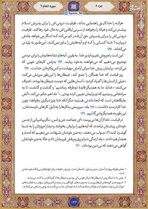صبح خود را با قرائت آیاتی از صفحه ۱۴۴ سوره سوره انعام شروع کنید.