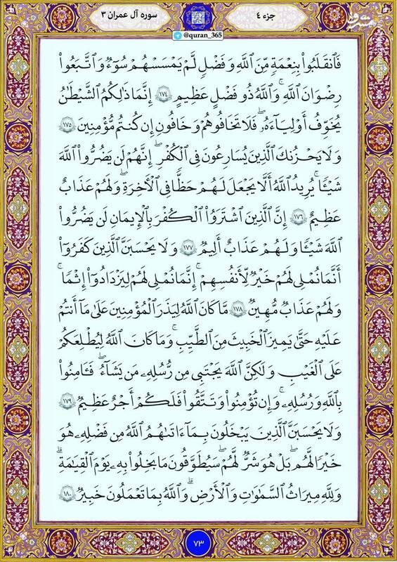 صبح خود را با قرائت آیاتی از صفحه ۷۳ سوره آل‌عمران (جزء چهارم) شروع کنید.