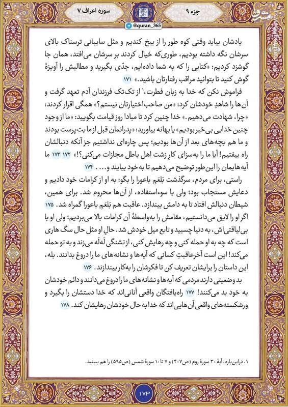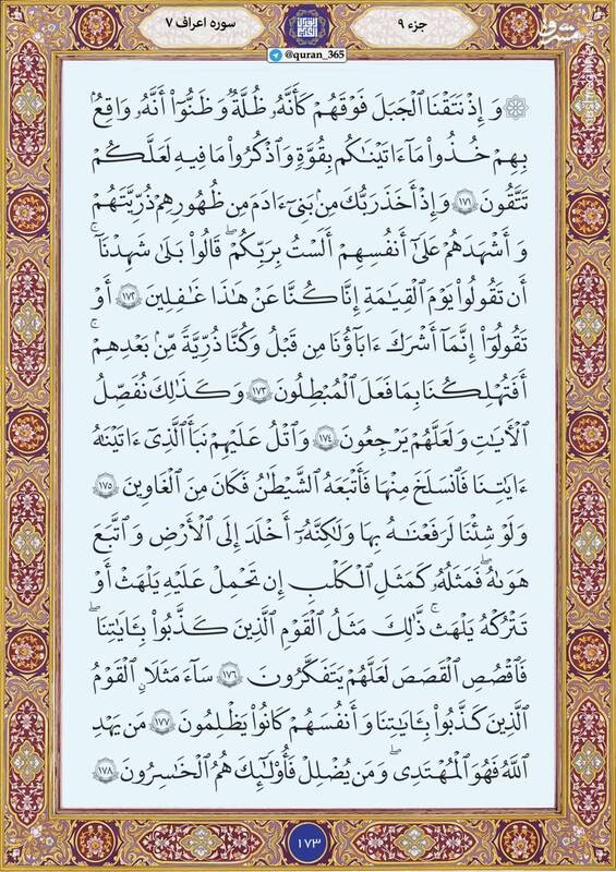امروز خود را با آیاتی از صفحه ۱۷۳ سوره سوره اعراف آغاز کنید.