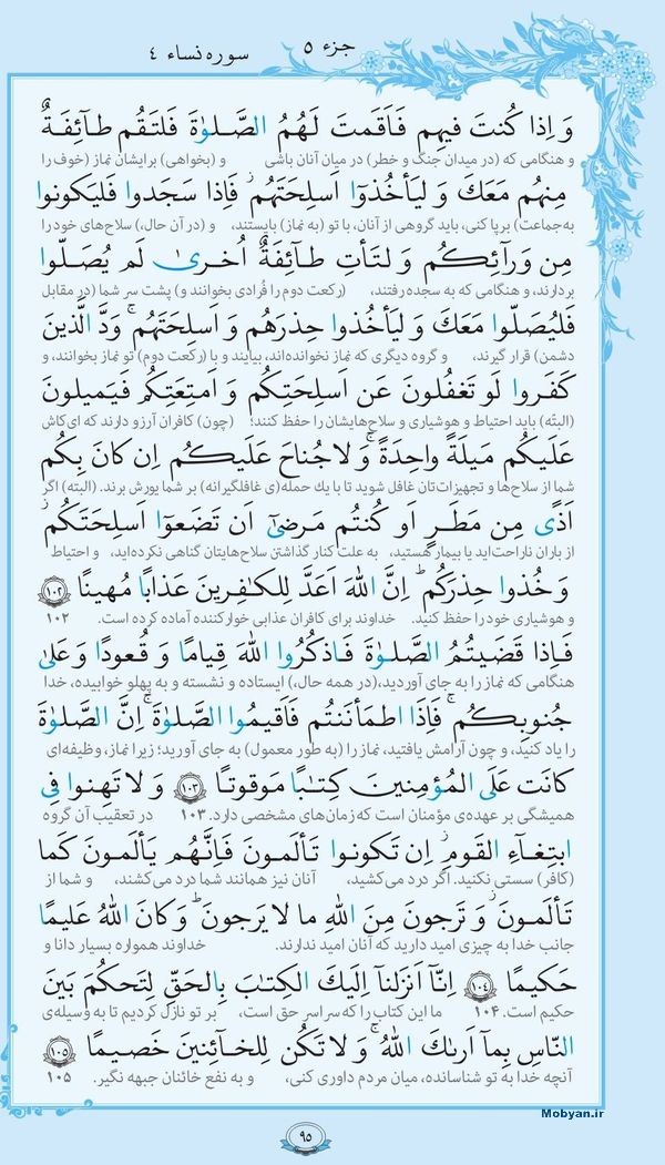 خانه‌های خود را با قرائت کلام وحی صفحه ۹۵ سوره مبارکه نساء(جزء پنجم) نورانی کنید.