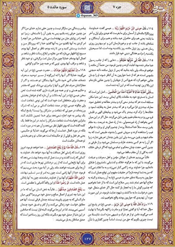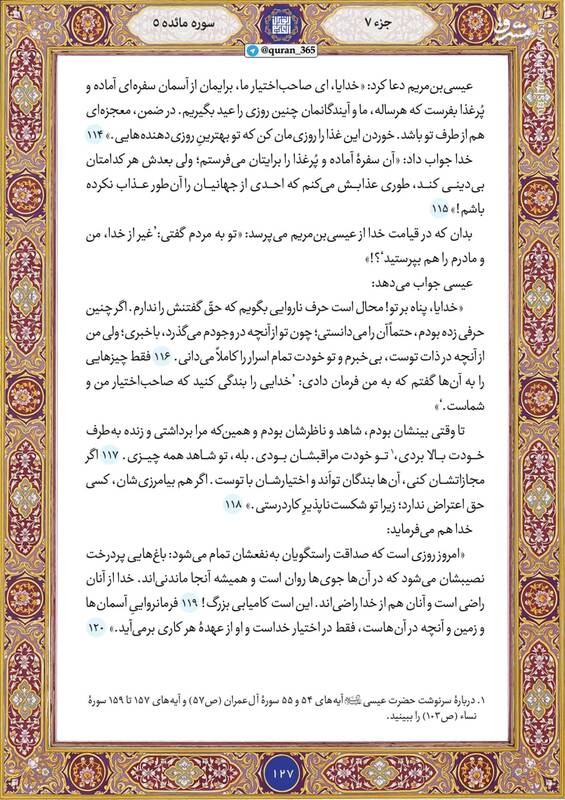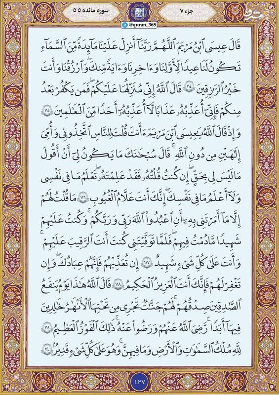 روز خود را با قرائت آیاتی از صفحه ۱۲۷ سوره سوره مائده شروع کنید.