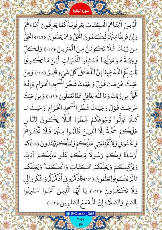 صبح خود را با خواندن آیاتی از صفحه 23از سوره مبارکه بقره (جزء دوم)، آغاز کنید.