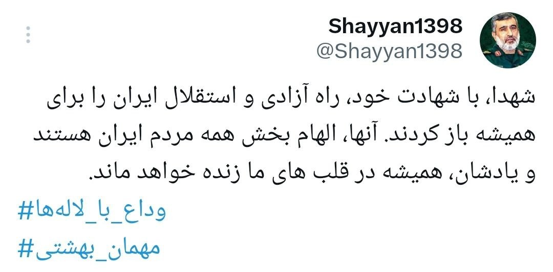 یکی دیگر از فعالان فضای مجازی تاکید میکند که شهادت راه آزادی و استقلال ایران اسلامی را باز کرده است.