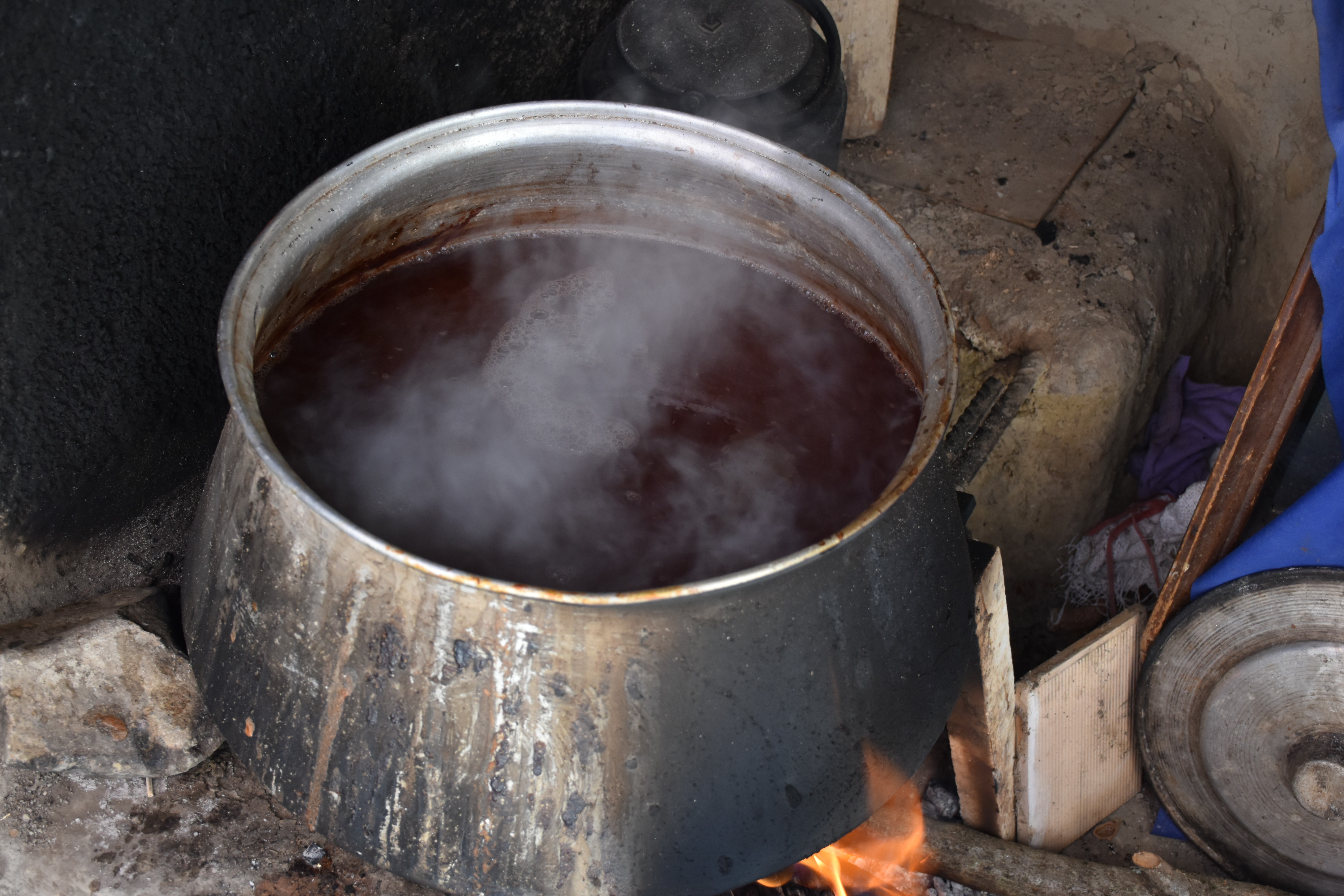 آب حاصل را روی شعله ابتدا با شعله زیاد می‌جوشانند و همین که آب آن کم شد با به‌هم‌زدن شعله را هم کم می‌کنند تا کندس ترشی که ابتدا قهوه‌ای کم‌رنگ و بعد سیاه می‌شود، حاصل شود.