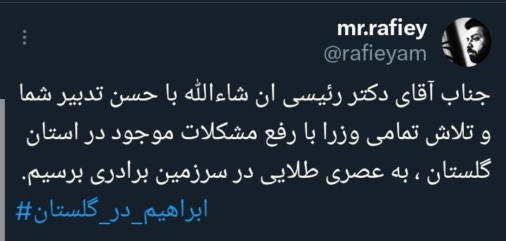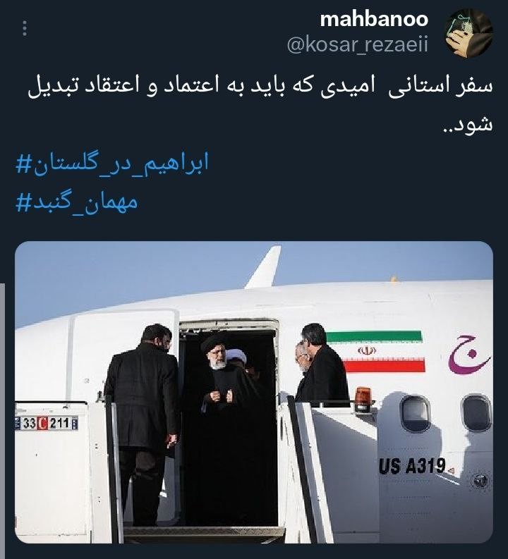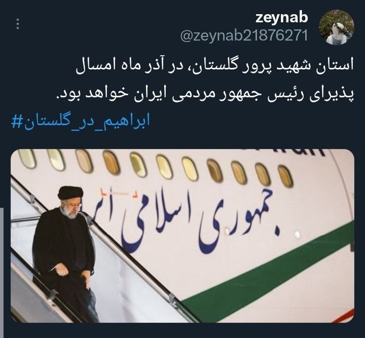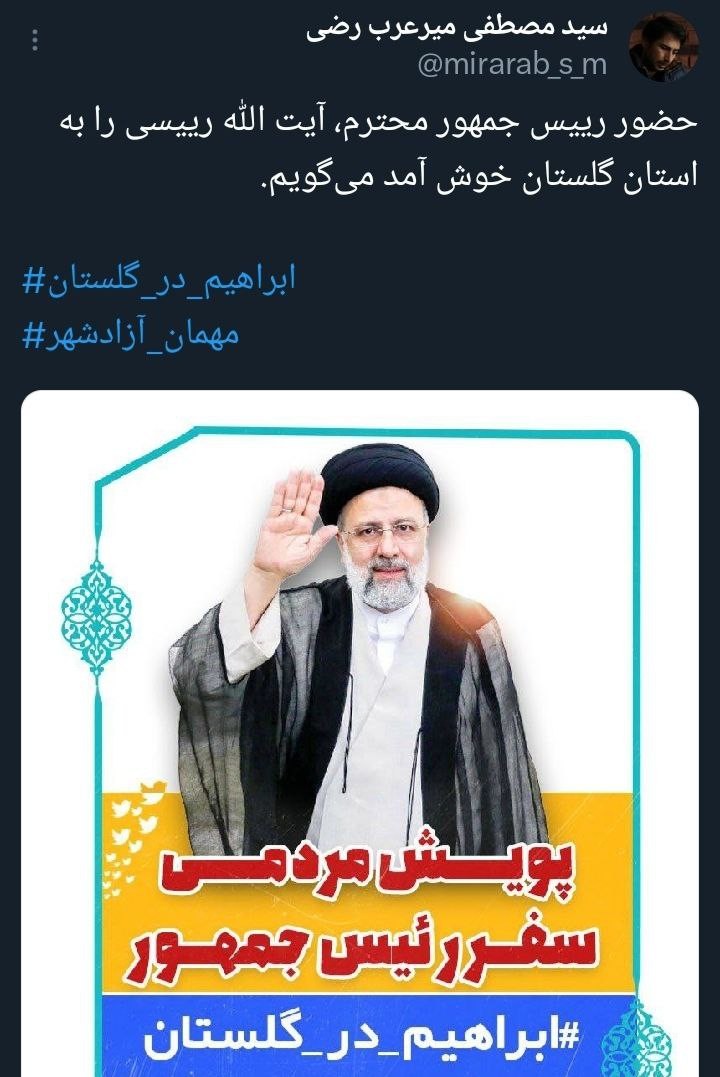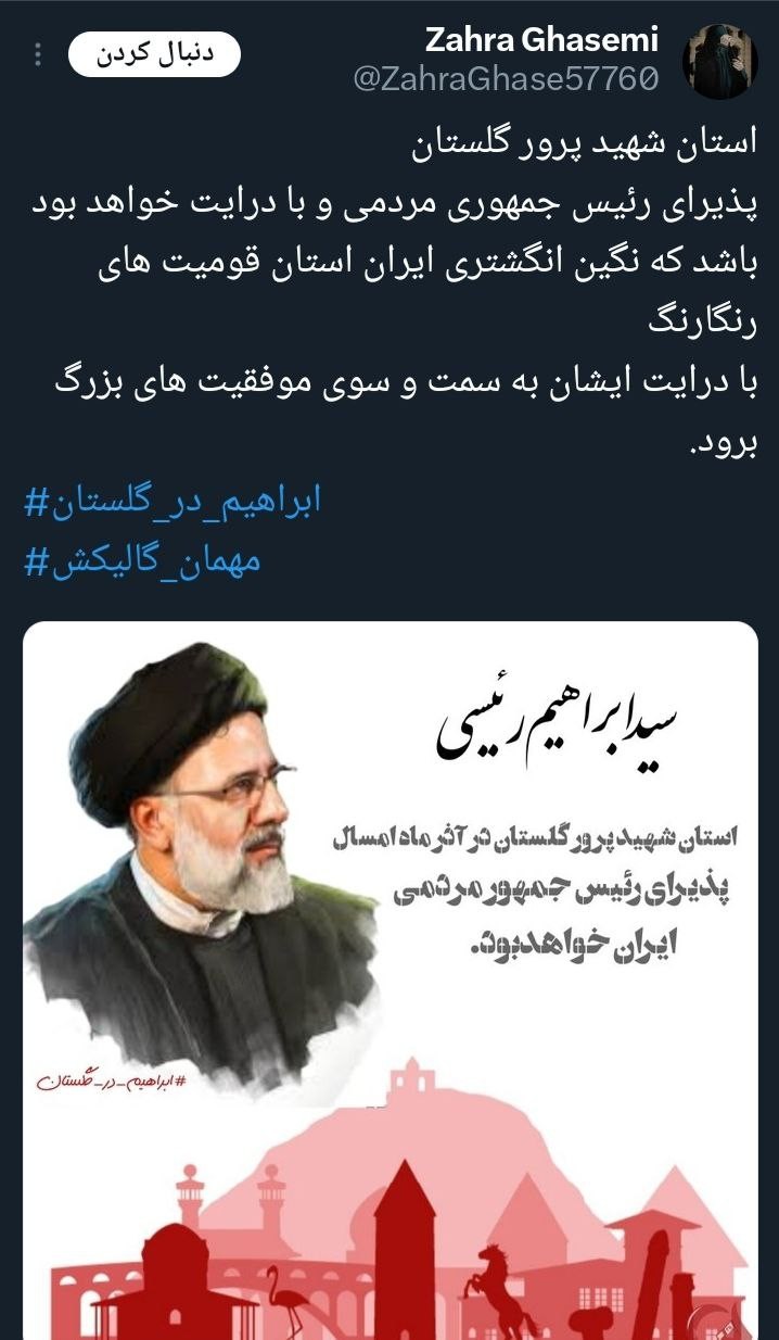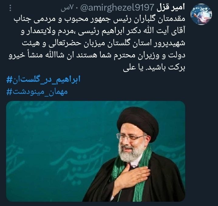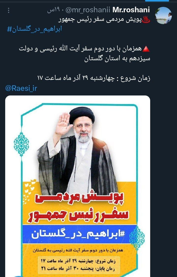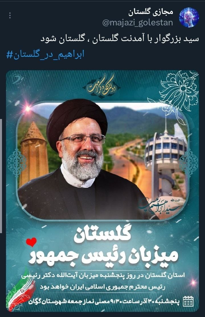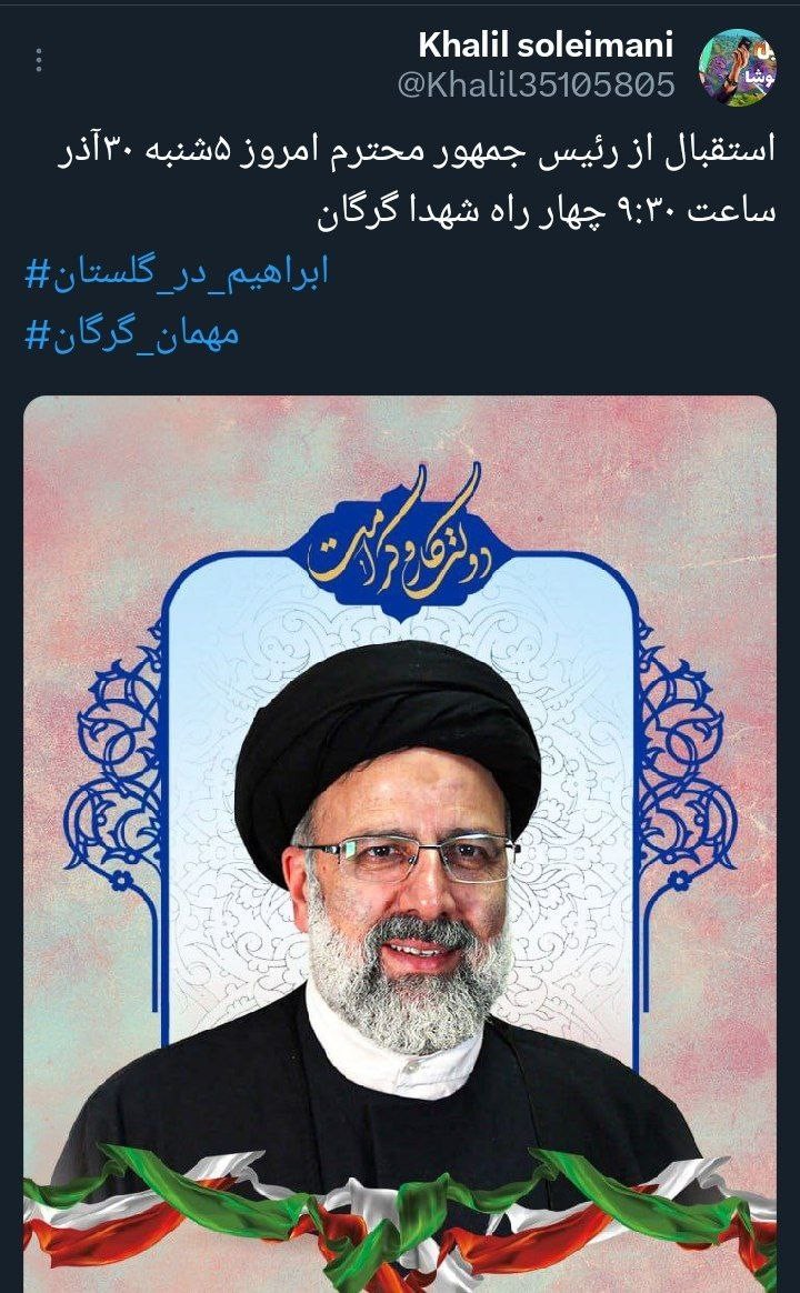 «آیتالله رئیسی» رئیسجمهور محبوب کشورمان در یکی از به یادماندنیترین روزهای سال، مهمان مردم خونگرم گلستان است، همزمان با این سفر هشتگ #ابراهیم_در_گلستان کلیدواژه برتر فارسی و داغ کشور شد.
