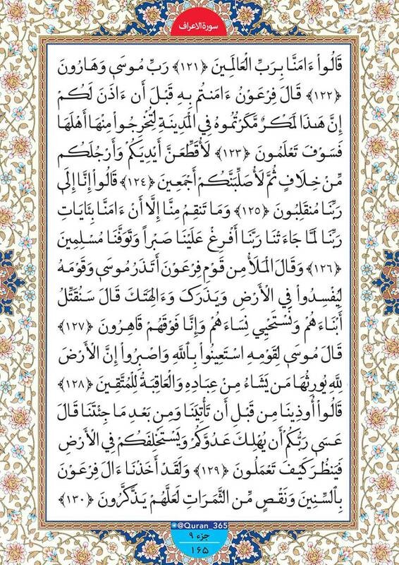 امروز خود را با قرائت آیاتی از صفحه ۱۶۵ از سوره اعراف (جزء نهم) شروع کنید.