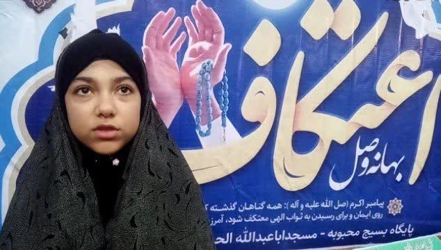 یسنا علینقیان اولین بار است که در اعتکاف شرکت میکند او ۱۳ سال دارد و حضور در اعتکاف را یک فرصت بینظیر برای بندگی کردن میداند.