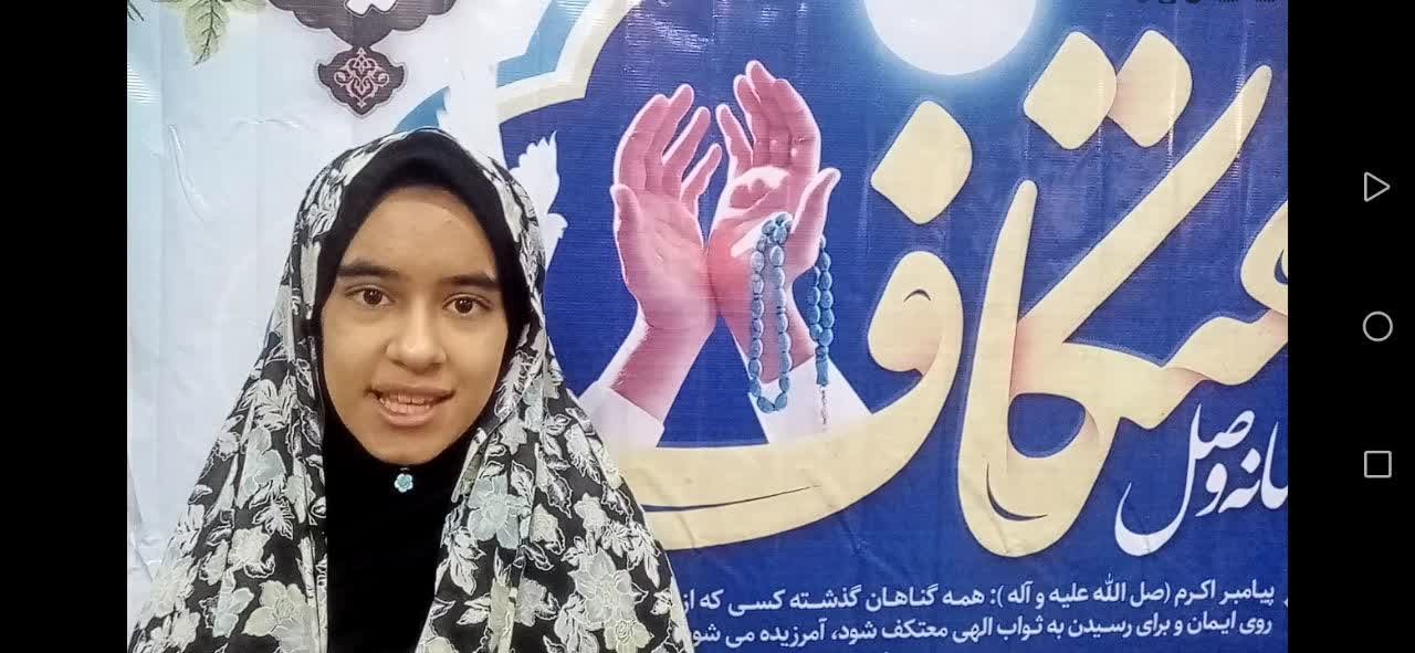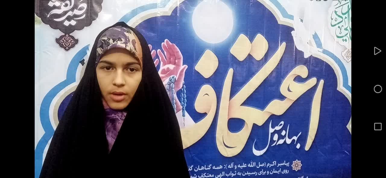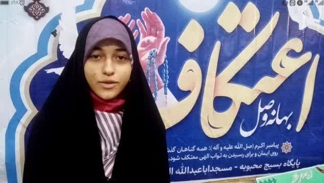 فاطمه علینقیان ۱۴ سال دارد او درباره اعتکاف افزود: خیلی خوشحالم که در اعتکاف شرکت کردم و از اینکه توانستم با خدای خودم ارتباط بیشتری برقرار کنم بسیار خرسندم.
