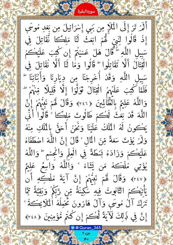صبح خود را با خواندن آیاتی از صفحه 40 از سوره مبارکه بقره (جزء دوم)، آغاز کنید.