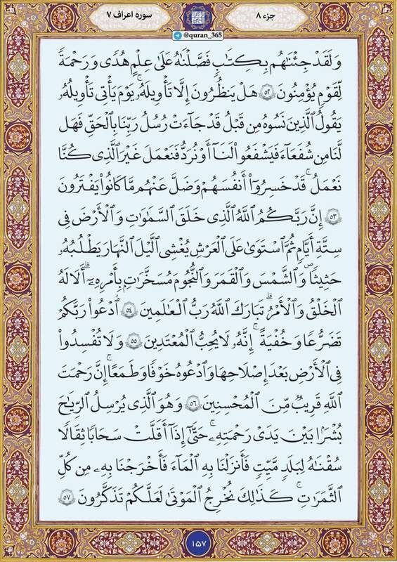 خانه‌های خود را با قرائت آیاتی از صفحه ۱۵۷ سوره اعراف (جزء هشتم) نورانی کنید.