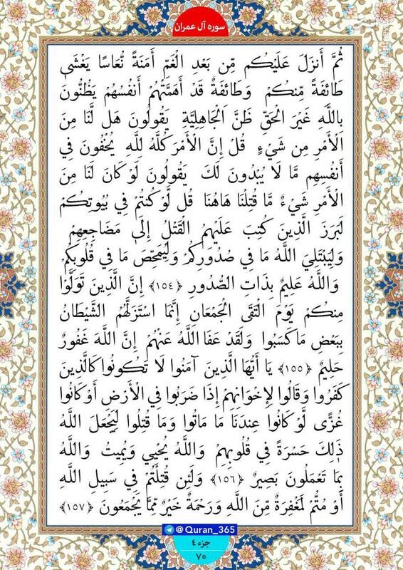 صبح خود را با قرائت آیاتی از صفحه 70 سوره آلعمران (جزء چهارم) شروع کنید.