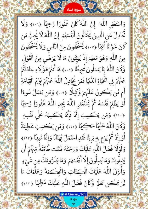خانه‌های خود را با قرائت کلام وحی صفحه 96 سوره مبارکه نساء(جزء پنجم) نورانی کنید.