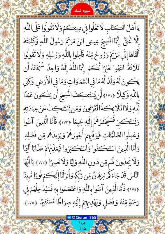 روز خود را با قرائت آیاتی از صفحه 105 سوره نساء(جزء ششم) شروع کنید.