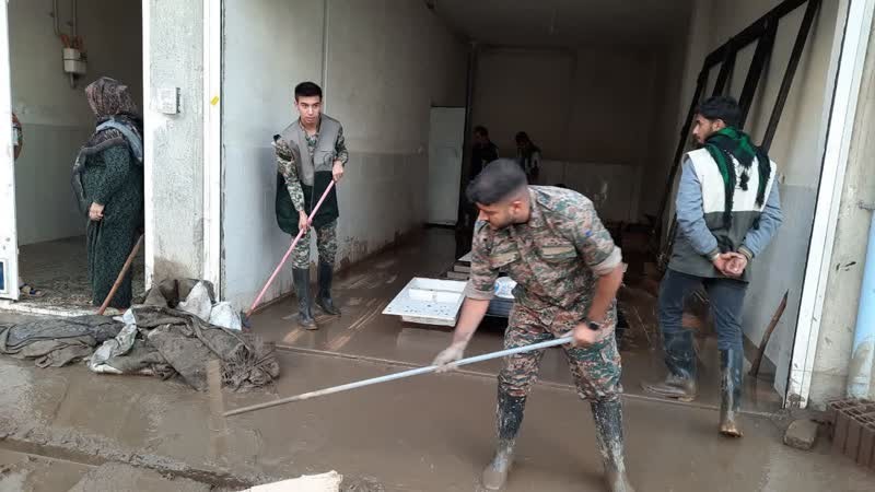 قاسمپور افزود: بسیجیان در قالب گروههای جهادی منازل مسکونی شهروندان کلاله را از گل ولای پاک سازی کردند.